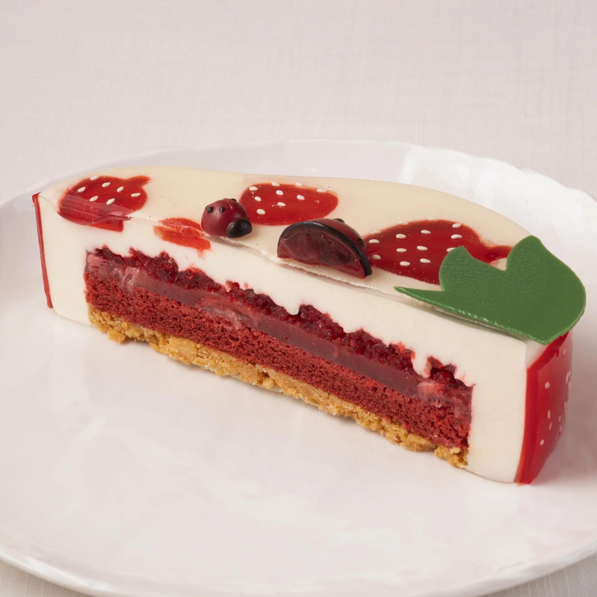 A poetic strawberry garden with fresh fruity and light flavors. Our Bakes creative take on a no-bake cheesecake with layers of strawberry marmalade, red velvet cake and salted jelly. Eat all layers in one bite for an explosion of flavors and textures: soft, creamy, crunchy; sour, sweet, salty, buttery.